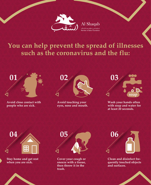 تأتي تنبيهات السلامة الصادرة والتي تم شرحها خلال ورش العمل عن بعد/ عبر الانترنت لجميع الموظفين، في إطار الحرص على سلامة وصحة الموظفين في المقام الأول، بالإضافة إلى الإلتزام بالمحافظة على الشقب، عضو في مؤسسة قطر، خاليا من الفيروس.