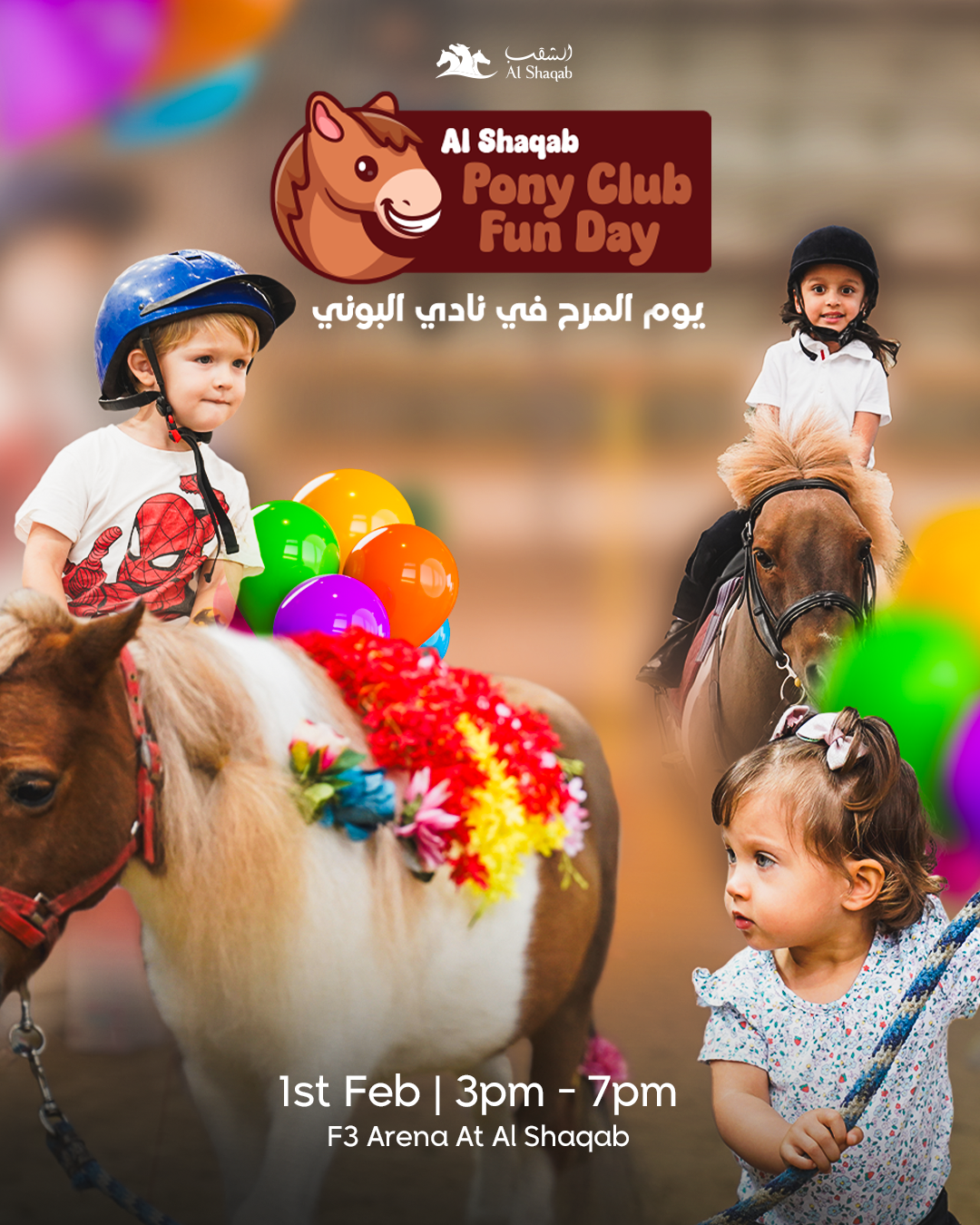 هذا البرنامج يعتبر كمقدمة لرياضة الفروسية وهو برنامج ترفيهي وتعليمي يساعد الأطفال على تطوير مهاراتهم في الفروسية من خلال تحسين توزانهم على الخيل، وتشجعيهم لركوب الخيل بثقة أكبر، ويضم العديد من الأنشطة والألعاب الترفيهية خلال الحصة. تتكون الفعالية من 8 حصص تدريبية، مدة الحصة 30 دقيقة، وسيتم إعطاء حصتين في الأسبوع. سيقوم الطلاب بالاختيار من بين الحصص المتوفرة أثناء عملية التسجيل ودفع الرسوم.